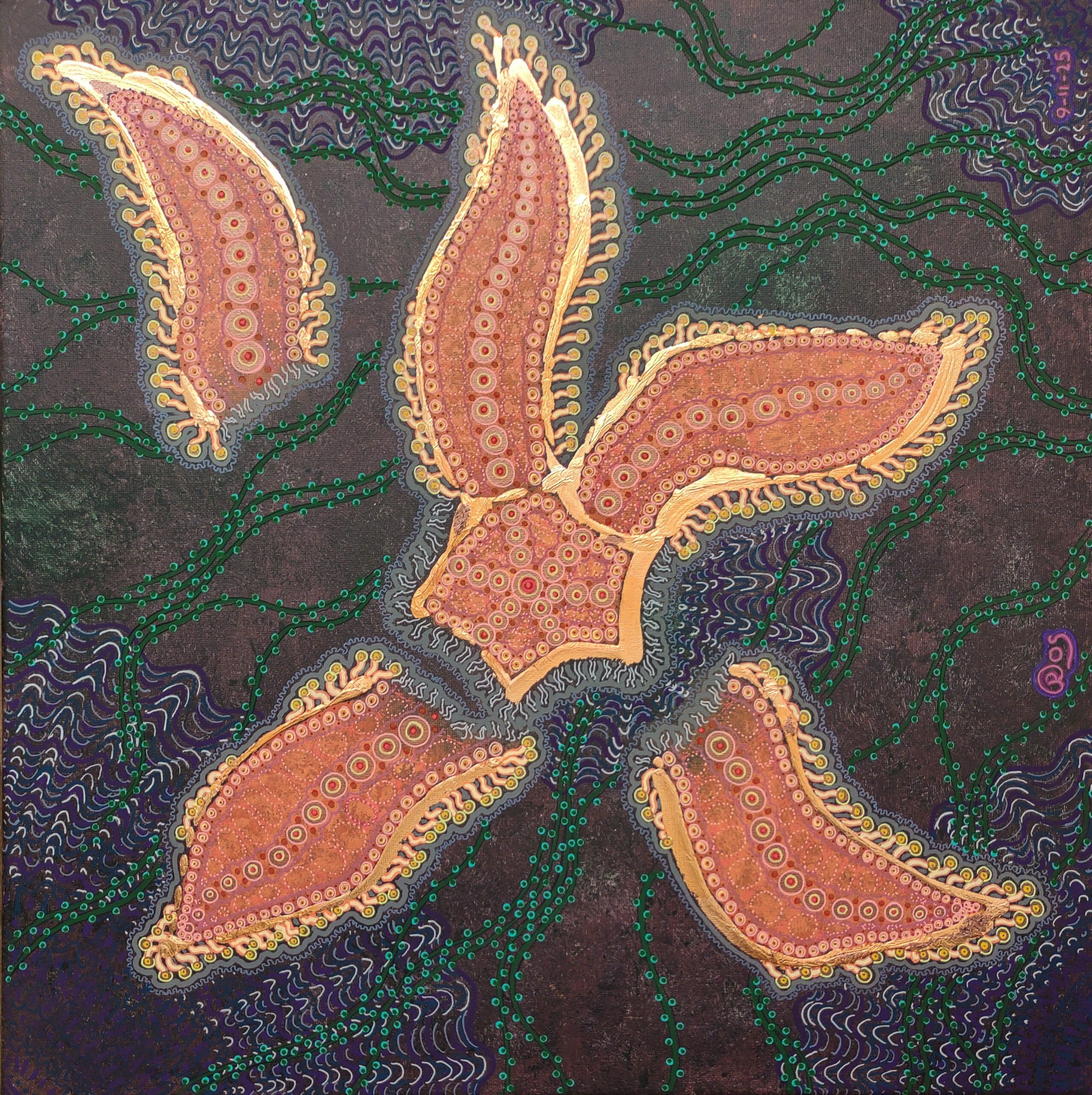 … de origen alemán, es doctora en lingüística y ejerce como docente en España. Autodidacta en pintura y dibujo, su obra artística se inspira en su pasión por la biogogía marina, desde su infancia. Sis piezas de estilo semiabstracto orgánico, destacan por su original temática y el desarrollo de un lenguaje pictórico propio, que resalta por su destreza en el uso del color y movimiento.