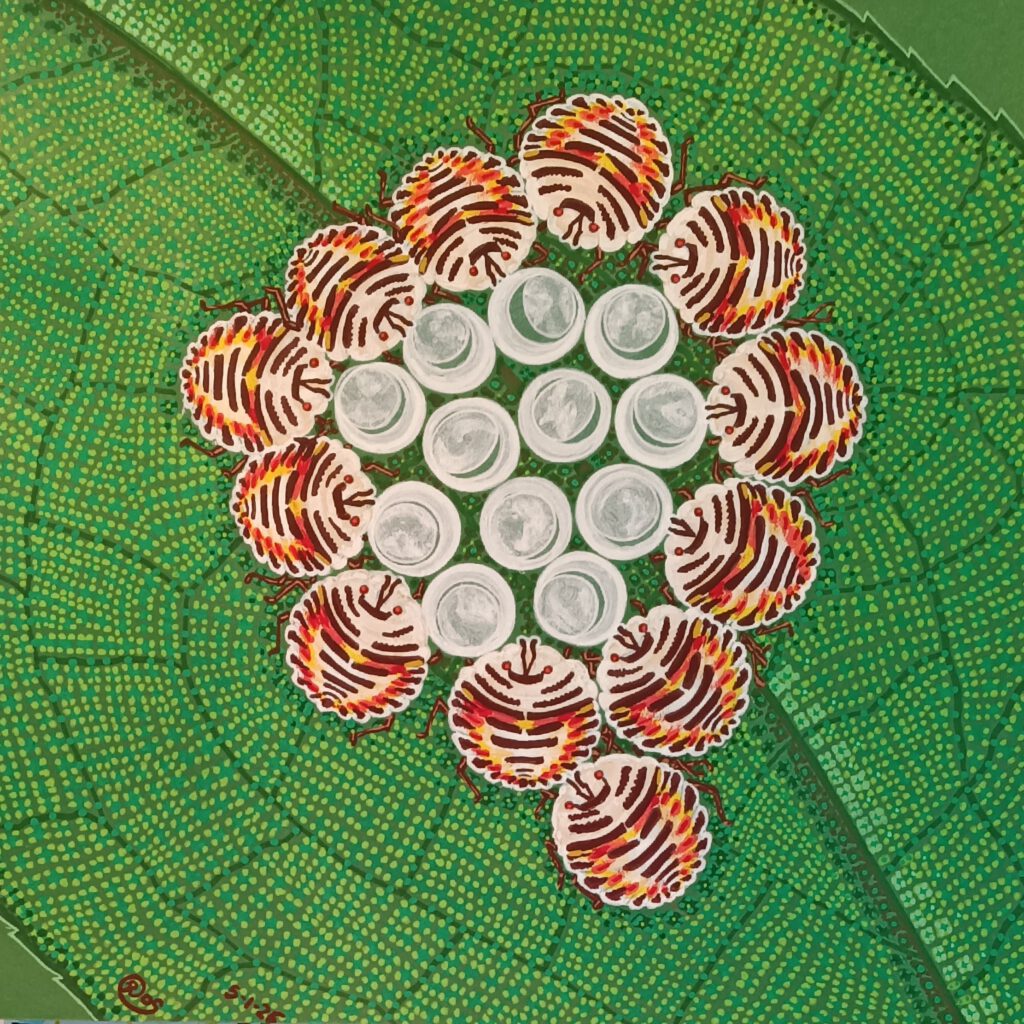 Se trata de obras en cartulina 30x30cm dibujados con rotuladores acrílicos y metálicos. Los motivos de las piezas en lienzo cuentan a menudo con un primer estudio del tema en cartulina de color.